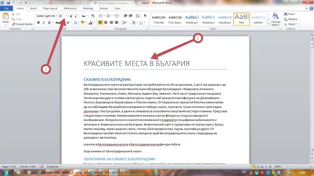 Работя с Word 2010. Свалих файла за упражнението, който е формат .docx, и започнах да работя с него. Това което забелязах е, че когато задавам Title или Heading 1, Heading 2, размера на шрифтовете се различават от тези, показани във видеото. Във файл, записан като.docx заглавие при задаване на Title излиза подчертано с размер 26 и е ляво подреден. А при задаване на заглавие от Heading 1 или 2 също се различава размера на шрифтове. Тези неща са зададени по подразбиране, и ако редактирам, какви размери трябва да бъдат зададени на Title, Heading 1, Heading 2, за да изглежда един документ стилно и красиво? Пробвах да презапиша файла като word 97-2003 документ, и там станаха така, както е показано във видеото. Имам въпрос относно скриването на текст, направих всичко, както е обяснено, влезнах в Outline и зададох Level 2, но не се получава. Защо при мен не работи тази функция?