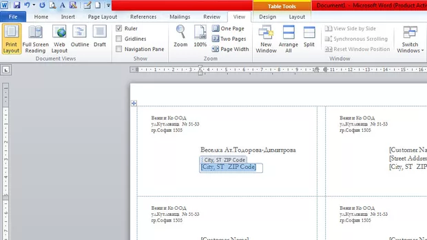 Защо в шаблон за визитка това,което е в горния ъгъл (име и адрес на фирма) се запаметява във всички картички, а това, което е името и адреса не се запаметява?