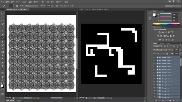 Това ми се получи като фон. Единственият ми проблем е, че като вляза в първоначалния Smart Object и колкото и да приближавам, не ми се виждат пикселите.