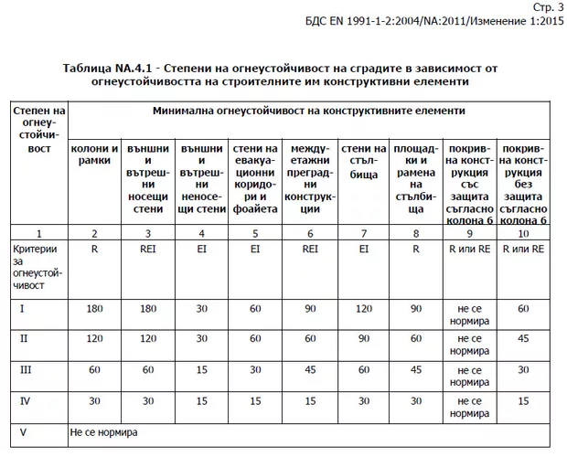 Искам да допълня, че има изменения в изискванията за пожароустойчивост. Таблица 4 от Наредба No Iз-1971 е променена. Към стандарта БДС EN 1992-1-2:2004/NA има издарено Изменение 1, където Таблица NA.4.1 също е променена.