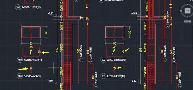 В публикуваната част от чертеж в AutoCAD се вижда, че много от размерите попадат върху армировките. Каква може да е причината?
