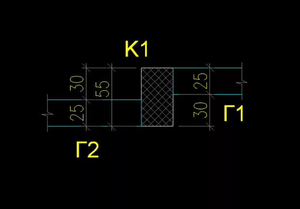 Точно така, както казва Георги. Първоначално колоната се вмъква със средната точка по горната страна. След това се задава отместване по Z, което е разстоянието от т. 1 до средата на страната. Може да е с + или -, в зависимост от това, как е завъртяна колоната. Допълнително обаче в Гр. 20 и Гр. 22 ще трябва да се добавят конзолни парчета до края, за да стъпи върху тях Гр. 31, иначе в осовата схема ще увисне.