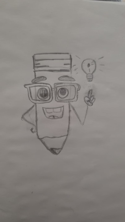 Много хубаво сте предали темата от урока – да създадете герой, който носи лична символика. Героят молив е чудесен избор, защото пренася директно концепцията за творческия процес. Експресивните очи, очилата и жестът с крушката добавят характер и послание.