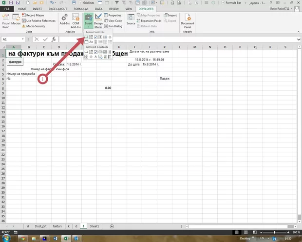 Здравейте, не се получи при мен - нямам в менюто си Developer. Excel 2010 на български е при мен .... В менюто, след Изглед, стои Добавки - а там ги няма тези бутони, които са оказани на илюстрацията тук ... как мога да ги открия, или е въпрос на инсталация на офис пакета ?
