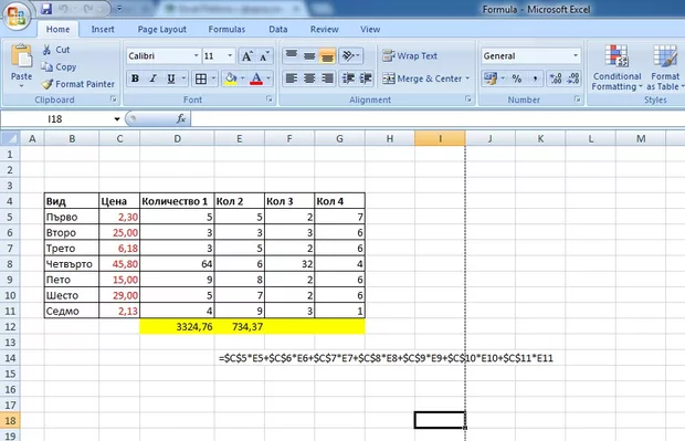 Идеята е когато имаш бригади и фирми, надолу по редовете записваш видовете СМР които може да се увеличават. В различните колонки попълваш изработеното за съответната седмица. Там трябва да ми излиза получаване "ориентир формулата в жълто и Е14". При писане на нов акт скривам предния с Hide без да ги трия защото натрупвам платените и задържани гаранционни за всеки вид СМР по отделно. При приключване на работа сумирам отделните количества. Затова ми трябва формула подобна на тази която съм извел да става автоматично, без да е в друга колонка - защото таблицата в един момент става много голяма.