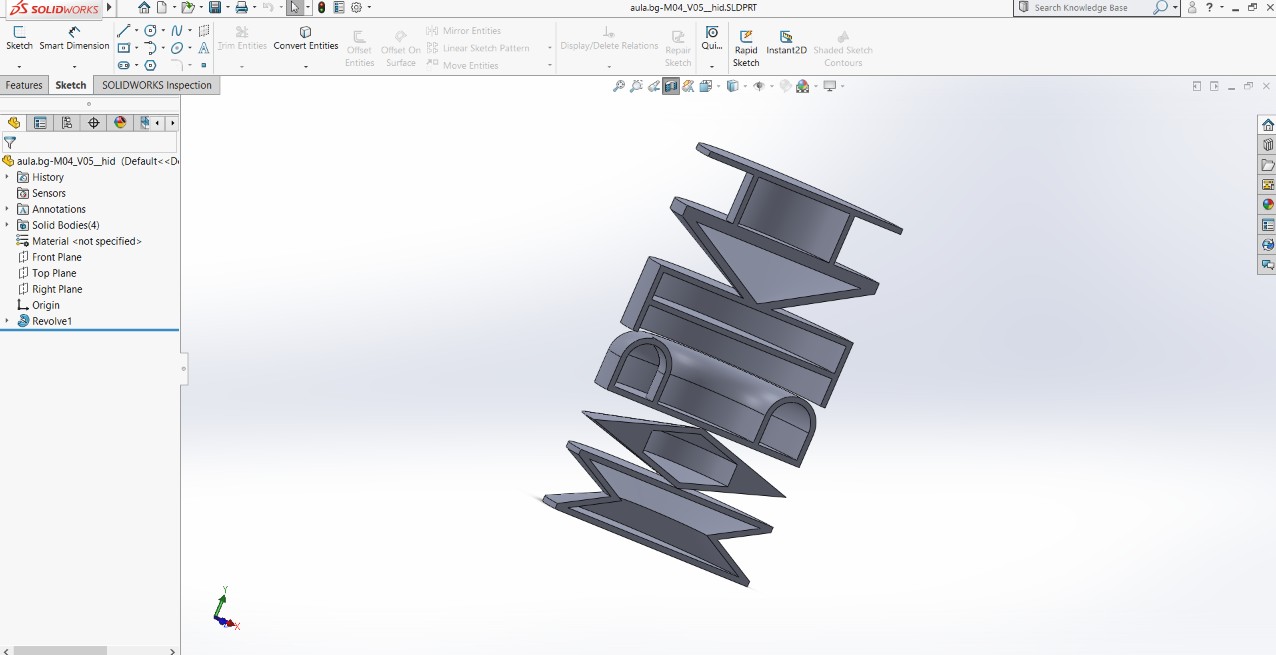 - В структурата на дървото (Feature Tree) се вижда отчетлив процес – ясно сте използвали скица и сте я завъртели коректно.