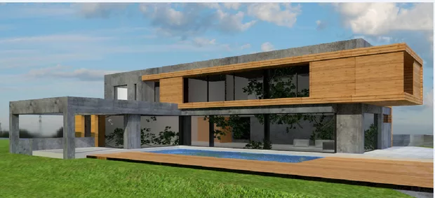Избери вариант за стъклото и продължавай напред със следващите подобрения. Това което имаш до тук е много добре. В доста фирми за визуализиране ще го приемат като краен резултат, но мисля че можеш да се справиш и по-добре. Виж пак частта за тревата в екстериора - изпробвай Displacement метода или VRayFur. Опитай още малко да поработиш върху бетона и дървената част. Тези обекти изпълват по-голямата част от рендера и си заслужава да се погледнат пак. За бетона и за дъските може да пробваш да сложиш чернобяла карта в рефлекшън слота да се разчупи малко това плоско и еднообразно отражение ... и чакаме нови резултати тук :)