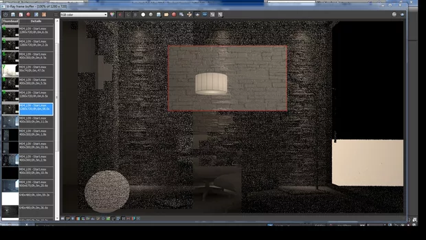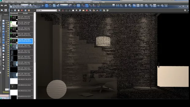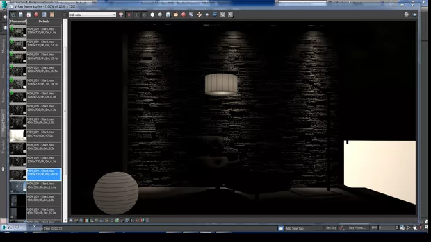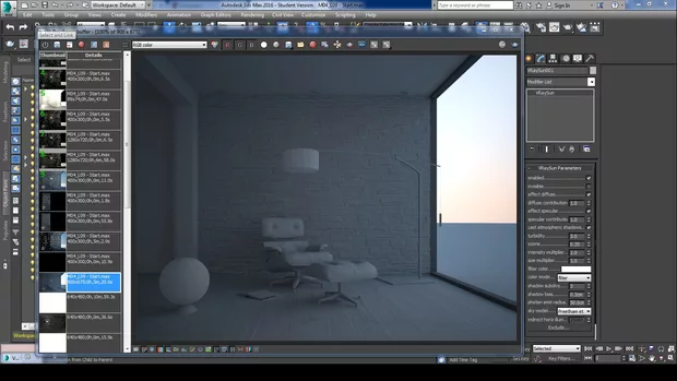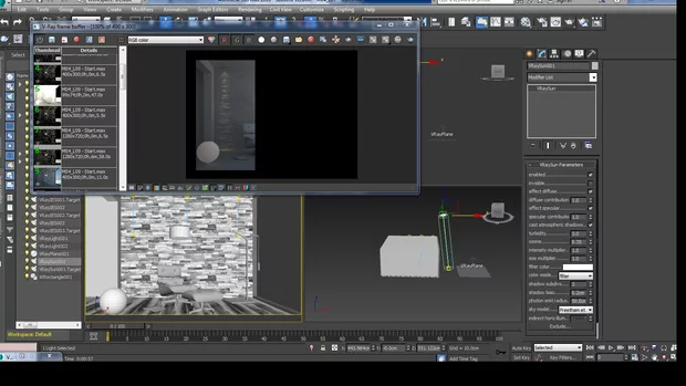 Как се генерира тази светлина обаче е другият въпрос - в сцената има VraySun + VraySky. Много е важно в случая, че ги има и двете - и двата елемента генерират осветеност в сцената. Което значи, че можеш да използваш и само един от двата елемента. Тъй като небето осветява като през изображение, цвета му има значение и този цвят ще се появи като нюанс върху обектите - както и трябва да бъде. Така - връщаме се в твоята сцена - след вторият рендер нещата стават различни - осветеност / цветове. При трети рендер и надолу, ако погледнем през прозореца не виждам да се появява небето. Според мен по някаква причина е изчезнало - провери пак в околната среда дали е приложено. Провери интензитета на слънцето - и дали като цяло го има в сцената и дали е "ON".