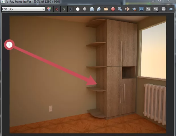 Ще се опитам да поясня допълнително къде гледам в сцената и как степенувам процесите при определянето на качеството. В курса по V-Ray споменахме няколко пъти кои елементи трябва да са налице за да очакваме добър рендер - (1) 3D модели с правилна геометрия + (2) материали с „физически коректни” атрибути и стойности + (3) реалистично осветление + (4) „фотографска” камера + (5) коректни настройки на рендера. Настройките, който си избрал и 3D моделите ги приемаме за правилни и ги изключваме от следващото ревю, въпреки че може да добавиш филтъра, който споменах в предишният пост. Да се върнем на материалите – в основният обект който представяш с рендера (гардероба) имаш един приложен материал, в който контролираш diffuse, reflection и bump с карти – което е Ок, но самата карта която ползваш (и чернобелият и вариант) представят дървесна текстура с реална големина около 20см. и разделителна способност около 500х500 пиксела. Когато я приложиш върху страницата с големина 1.2м, текстурата ще се нанесе няколко пъти и линията на тайлинга започва да се забелязва. След това – самото изображение не е чисто, пикселизирано е няма детайл в него и има някакви допълнителни бели линии, който не съм сигурен че са част от текстурата. Препоръката ми е да ползваш големи и чисти текстури – 2000х2000 пиксела е нормално, без да се повтарят по повърхността, от който да очакваш детайл (виж отново модул 3 – материали). Светлините – VRaySun&VRaySky – винаги е добро начало и за определяне на exposure-a и много често си остава и краен вариант, но пак те съветвам, както и в предишният пост, да експериментираш с IBL (осветление, от изображение). Другото нещо (само като съвет) е да махнеш голямата светлина от тавана – не е реалистично такъв голям светлинен поток от площна светлина да идва от тавана. Вместо нея може би е по добре да използваш SkyPortal от прозореца (виж отново модула за интериорно рендериране в курса). Друга препоръка е да намалиш влиянието на пода в GI, защото основният цвят на пода е силен и наситен и тази „червеникавост” се предава като колоризиране на стените и тавана. Това можеш да го направиш или с OverrideMtl или десен бутон върху пода -> Vray Properties , Generate GI от 1 го намали на 0,2. Камерата – аз бих изключил vignetting ефекта и бих използвал Neutral филтър и ако искам след това тези ефекти бих ги добавил в пост (PS). Също така бих използвал и Guess Vert бутона и може би малко по различен ъгъл към обекта.