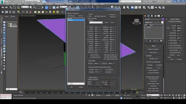 - статичен и динамичен обект - в твоя случай Plane=Cloth / Box=Collision Object