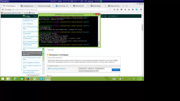git push origin master при мен се получи по доста стране начин. Не успях да впиша username и password, но пак се качи в Github. Изскочиха ми подсказващи прозорчета(явно софтуерът ме съжали накрая :) ), в които въведох юзърнейма и паролата поотделно и се пушна. Дали е правилно?