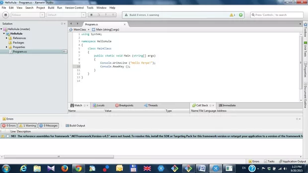 И едно съобщение, че трябва да инсталирам SDK или таргет пакет за тази версия на framework.