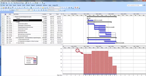 Здравейте, може ли да попитам защо диаграмата на работната ръка ми започва преди началото на дейностите? Моля да ми кажете къде бъркам?