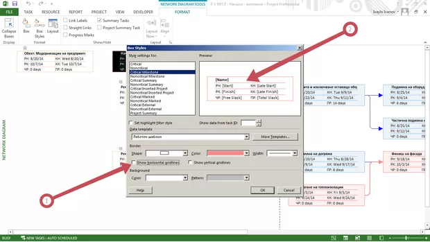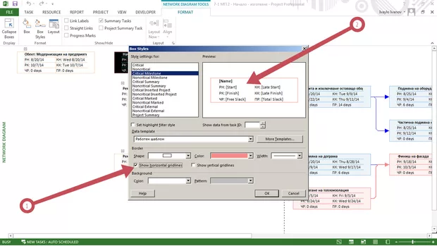 Защо, моля, при отметната кутийка на Show horizontal gridlines от Box Styles на FORMAT (стрелка 1 на картинка 1) няма хоризонтални линии на екранчето Review (стрелка 2 пак на картинка 1), а при неотметната кутийка (стрелка 1 на картинка 2) - има хоризонтални линии (стрелка 2 на картинка 2), т. е. точно обратното на урока? Благодаря.